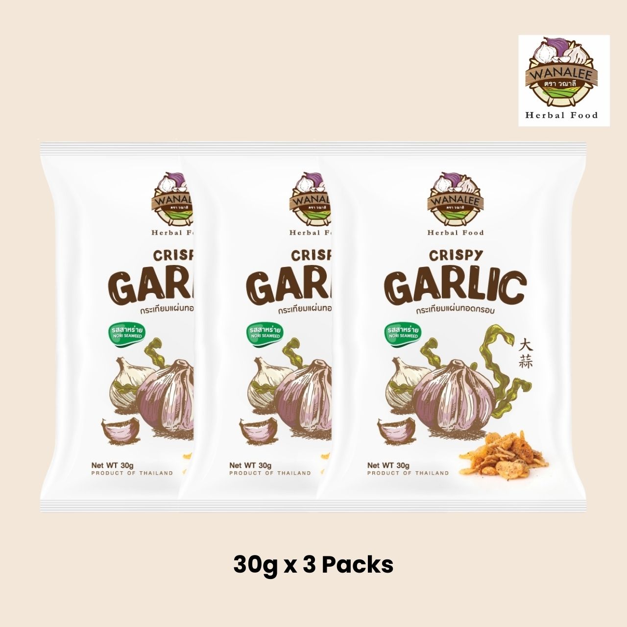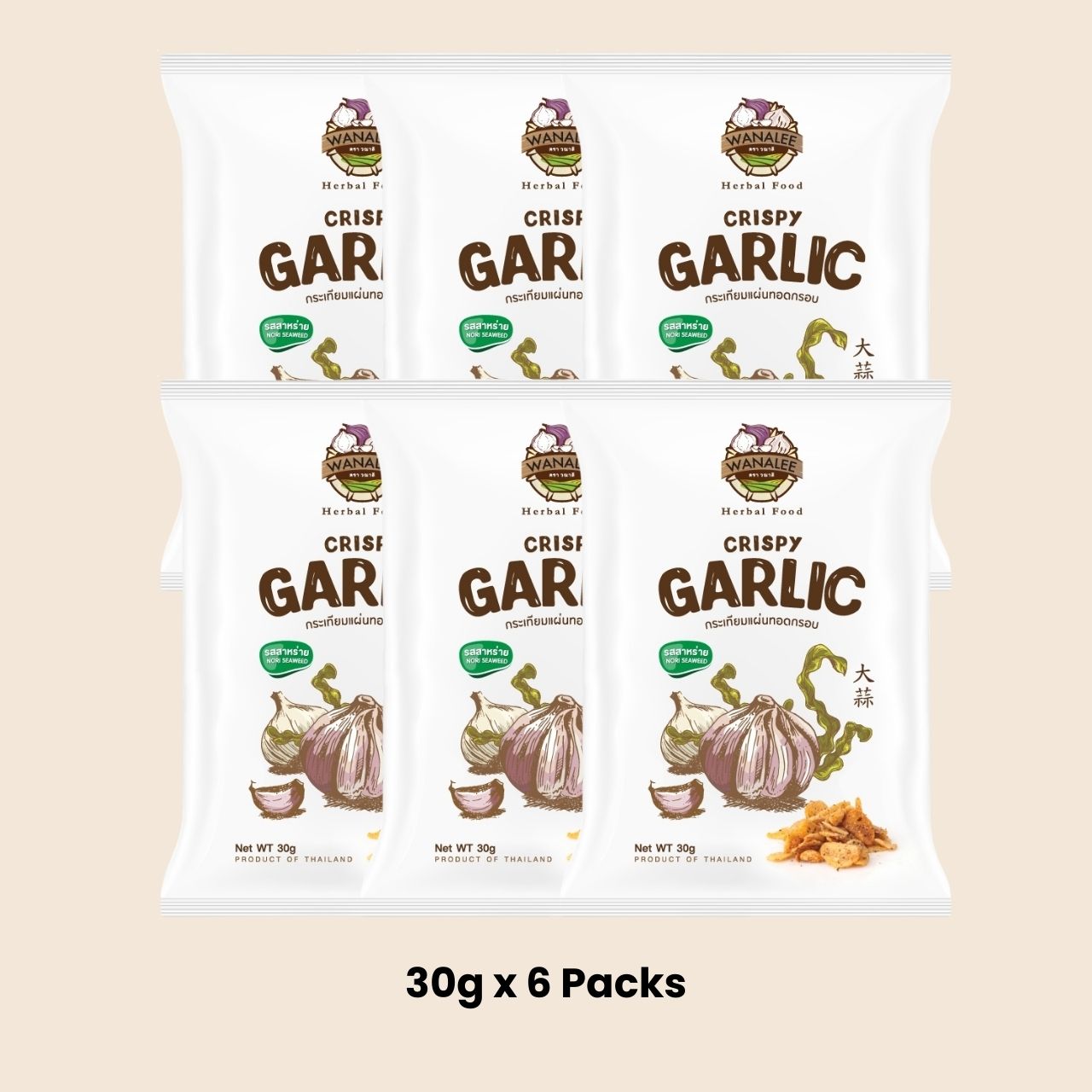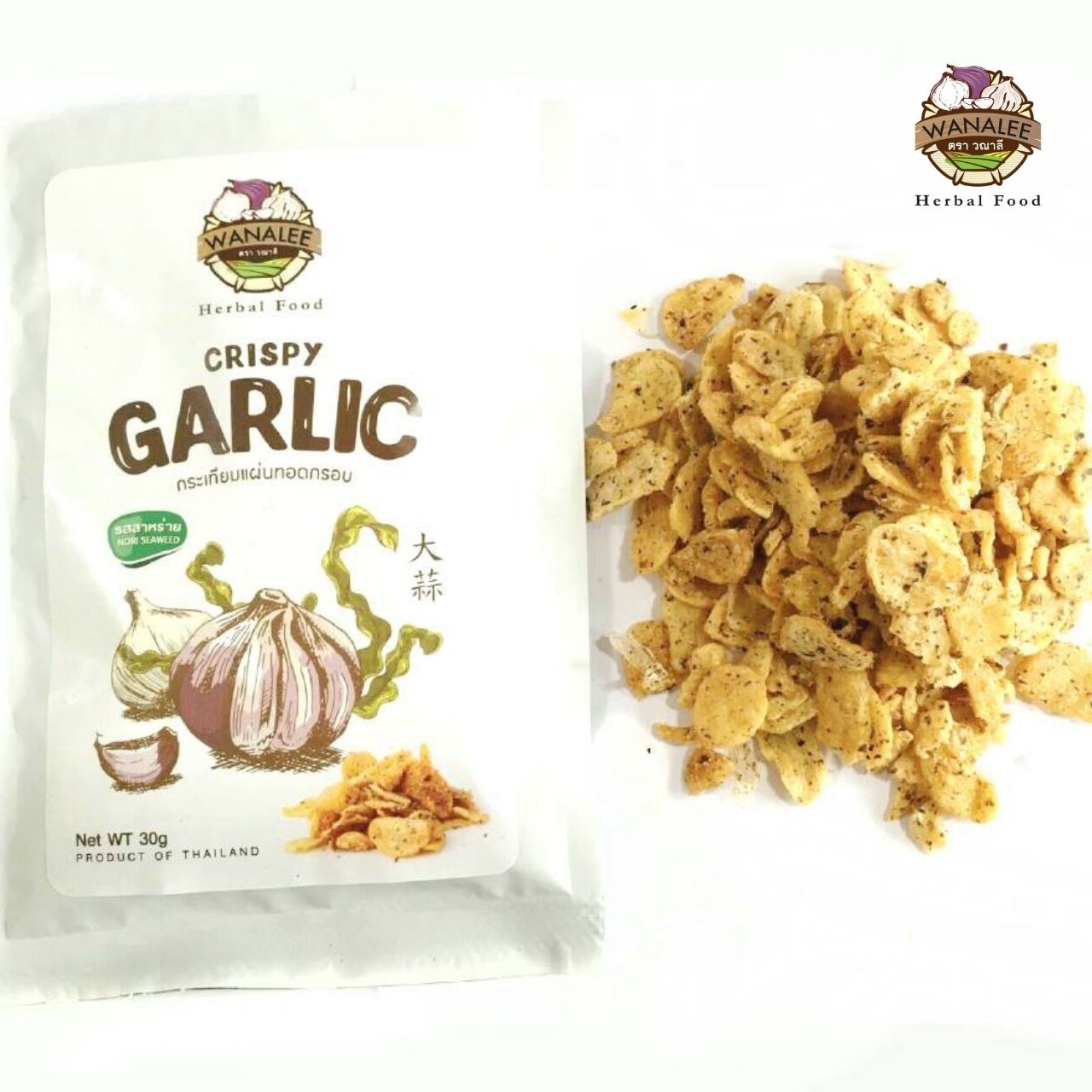 Experience a delicious twist on a Thai favourite with Wanalee Crispy Garlic in Nori Seaweed flavour. Each garlic slice is fried to a perfect crunch and coated with umami-rich seaweed seasoning, creating a savoury and addictive combination. It’s the perfect balance of crisp garlic and smooth ocean-fresh flavour.